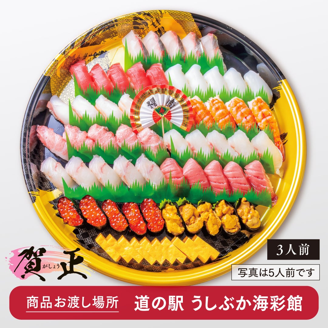 本マグロ大トロ・本マグロ中トロ・本マグロ赤身・牛深産真鯛・牛深産クエ・牛深産シマアジ・牛深産アオリイカ・天草産ヒラメ・天草産生ウニ・イクラ・茹でエビ・飾り玉子